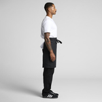 Construction: Self fabric waist strap, front patch pocket, top stitch detailing, preshrunk to minimise shrinkage